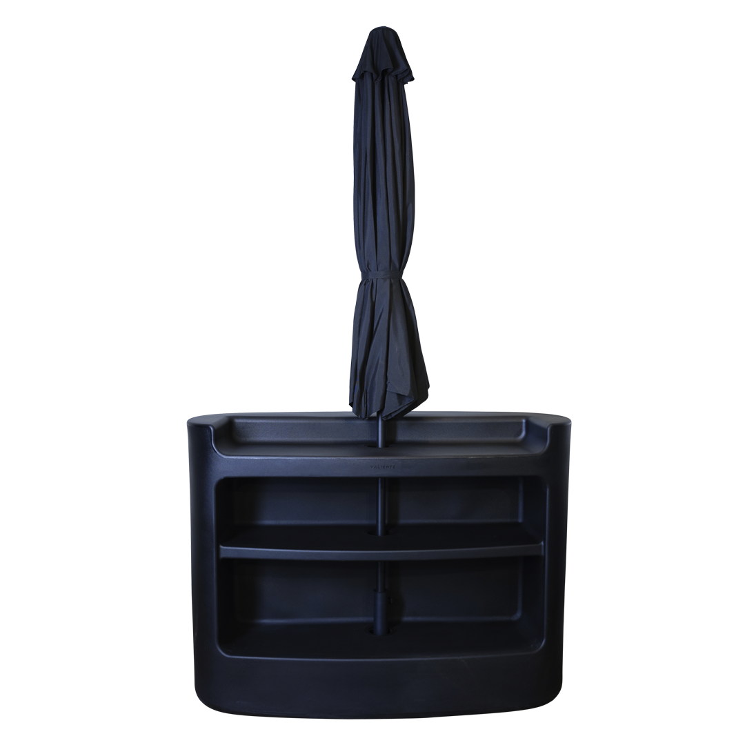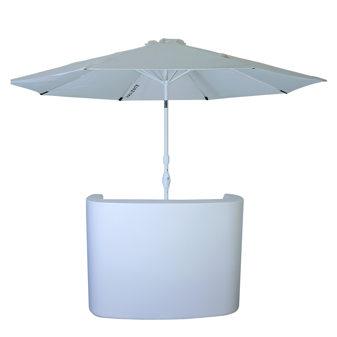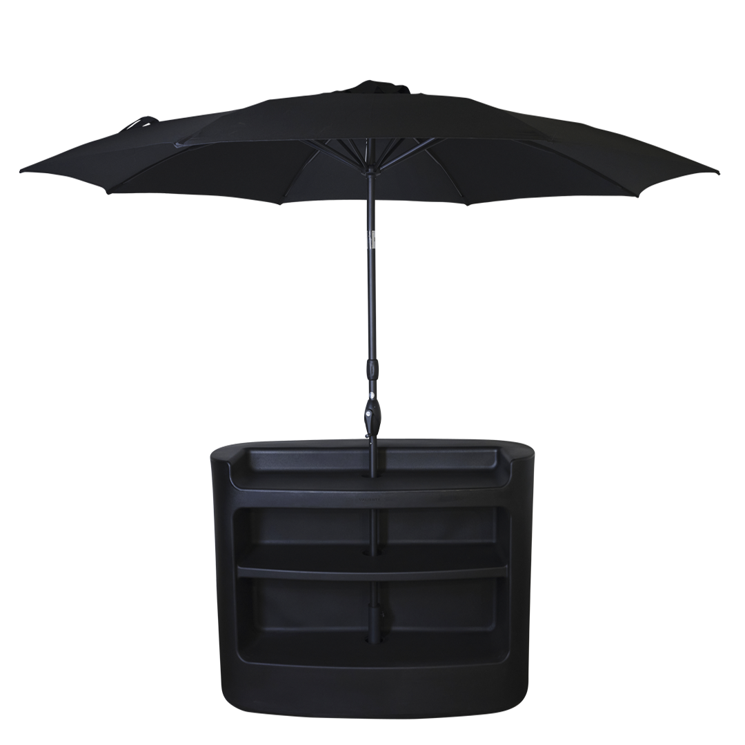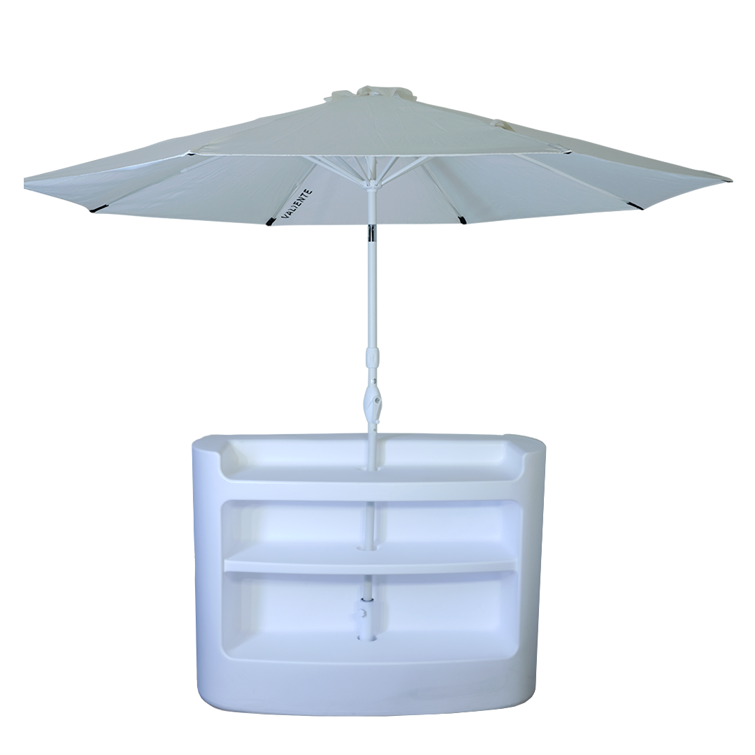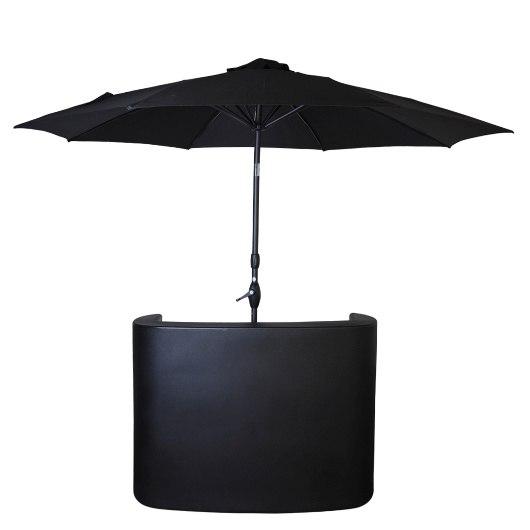 Is your bar in a sun-drenched corner? No worries, our version with umbrella provides cooling shade here too. Available in white/black or LED/RGB for that extra touch.