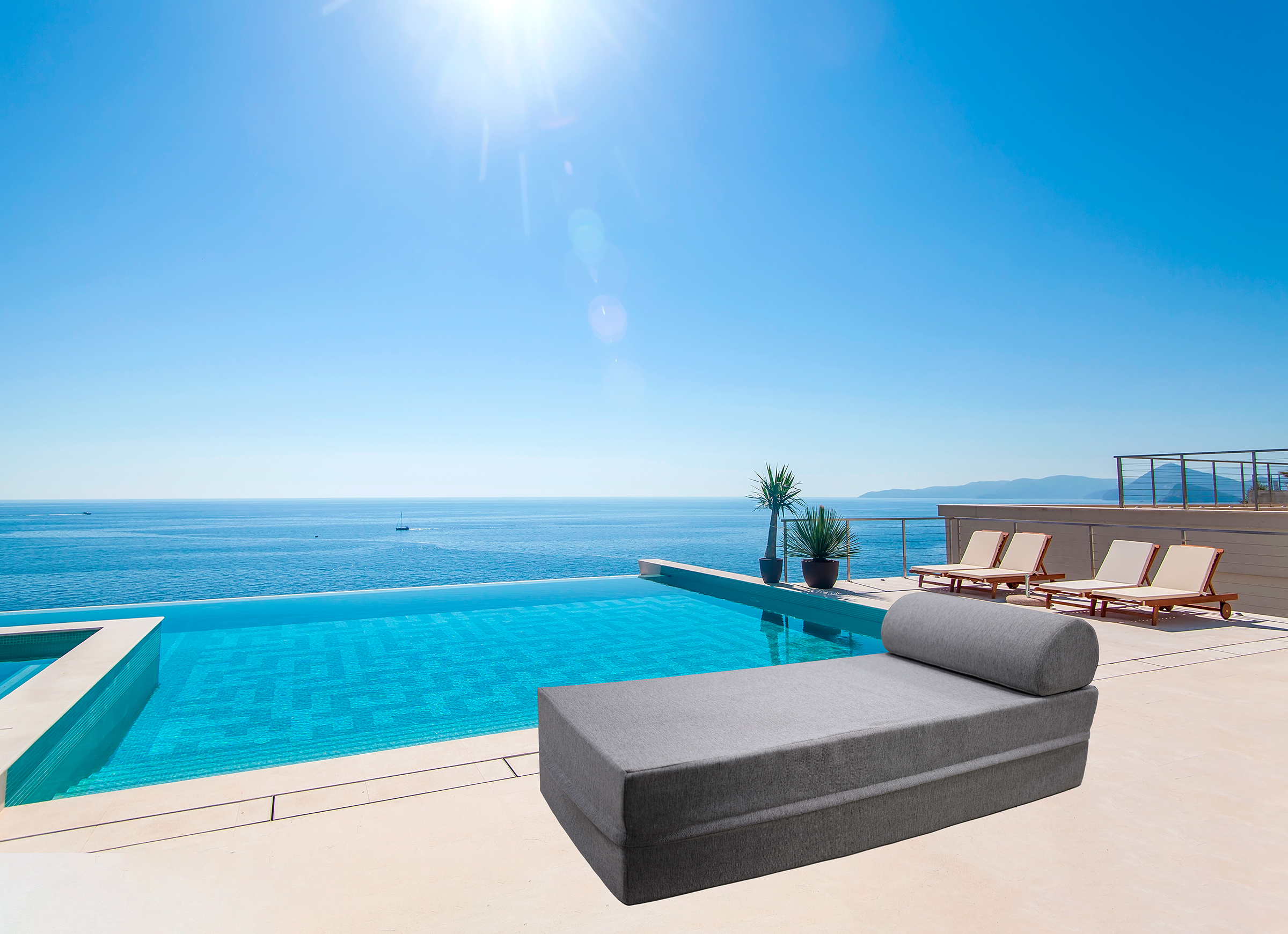 Notre nouvelle collection Lounge Line, disponible dans des tissus neutres et élégants, résistants à l’eau et au vent, pour un usage intérieur et extérieur.