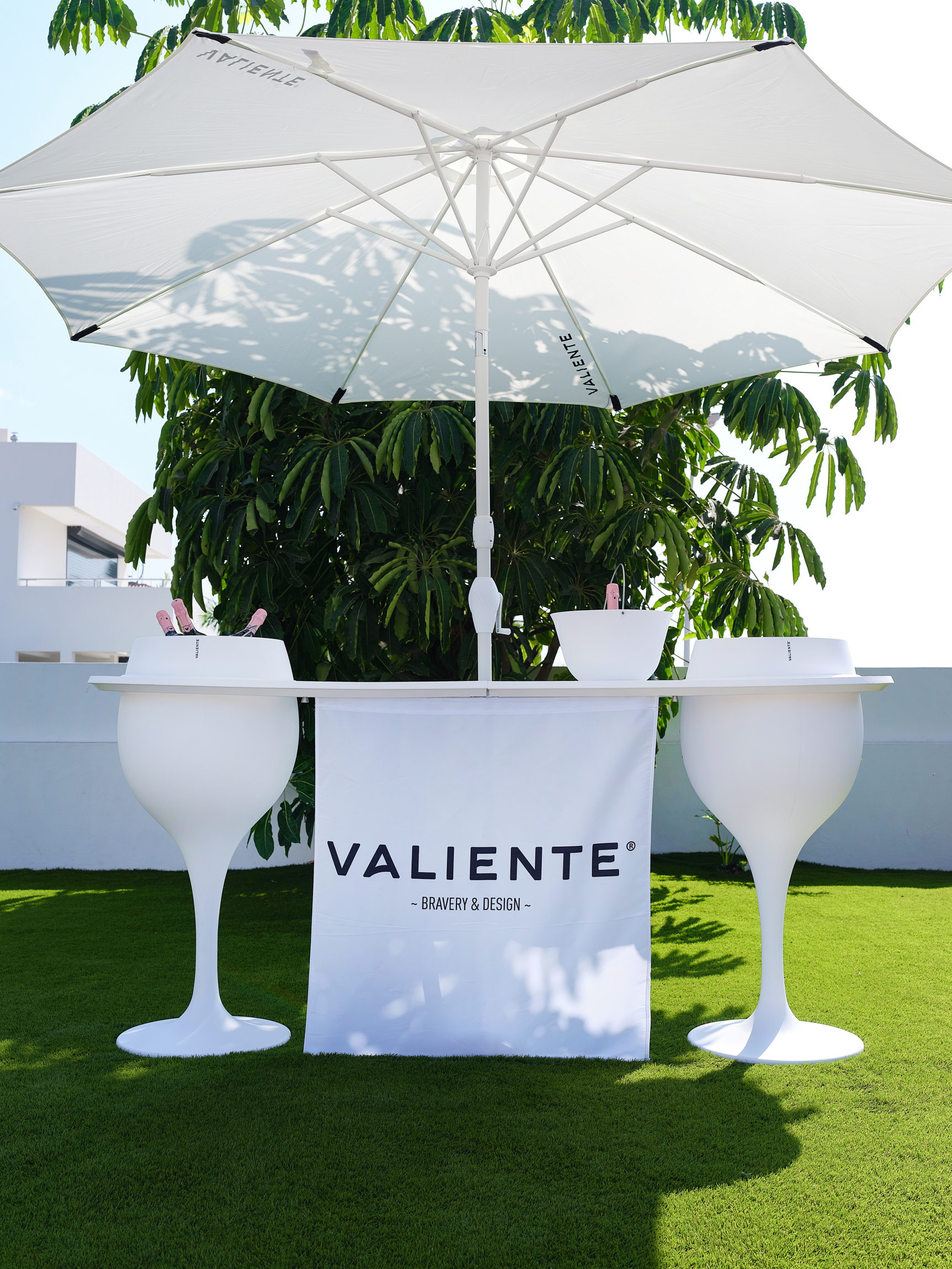 Geschikt voor elk feestje of evenement; onze exclusieve Bar Classic bestaande uit een opvouwbaar barblad, 2 Classic ijsemmers, een Valiente® banner, 2 binnenemmers en een parasol met voet.